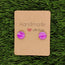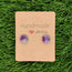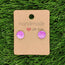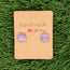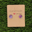 Pendientes de botón hechos de arcilla polimérica redondos en tonos violetas con efecto piedra natural.
